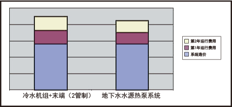 夏季:地下凉爽的井水(相对环境温度)通过水源热泵机组,带走空调系统载冷剂热量,使室内变得凉爽。